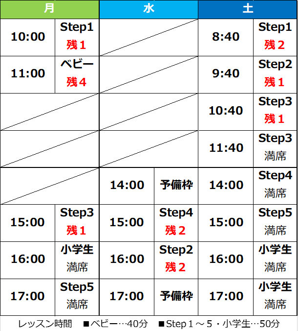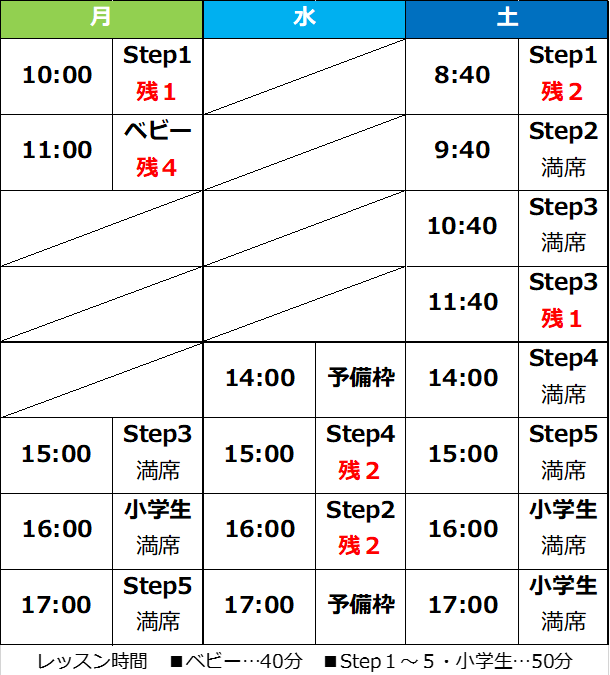 ・現在、残席のあるクラスのみ、新規ご入会が可能です。満席の場合は、キャンセル待ちでのご案内となりますので、あらかじめご了承ください。